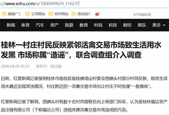 红星新闻记者了解到,西镇头村有数十名村民曾联名向上级部门投诉,认为是桂林福达农产品冷链有限公司(下称福达公司)违规改建活禽交易市场造成的污染。